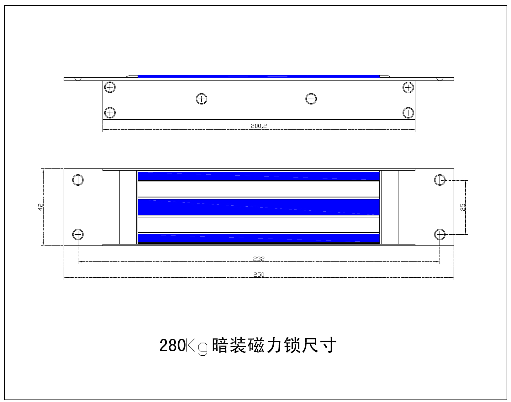 一、產(chǎn)品參數(shù) 鎖體尺寸:246mmL×56.5mmH×27.5mmD 吸板尺寸:156mmL×43mmH×11mmD 最大拉力:320kg(700Lbs)直線拉力 輸入電壓:DC12V或DC24V+10% 工作電流:12V/300mA 24V/150mA 安裝方式:暗裝嵌入式 表面溫度:低于環(huán)境溫度+20℃以內(nèi) 適用溫度:-10~+55℃(14-131F) 適用濕度:0~95%相對濕度 外殼處理:陽極硬化電鍍處理 鎖體處理:環(huán)保鋅電鍍處理 吸板處理:環(huán)保鋅電鍍處理